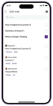 Structuring of new and old notes. With us, all notes can be linked to each other. You won't forget anything! All your old notes will be used for new ideas!